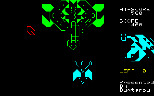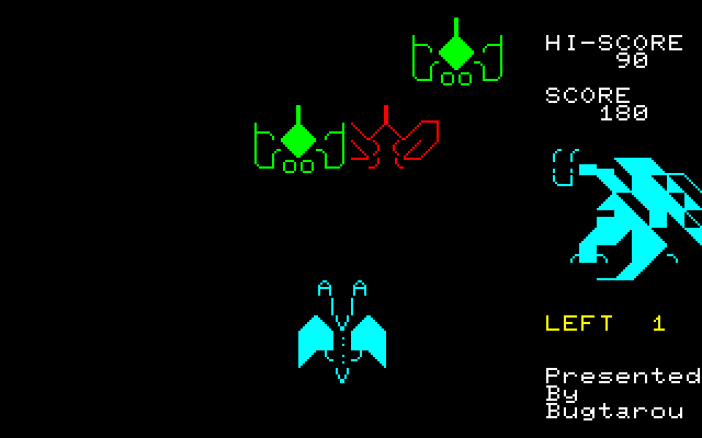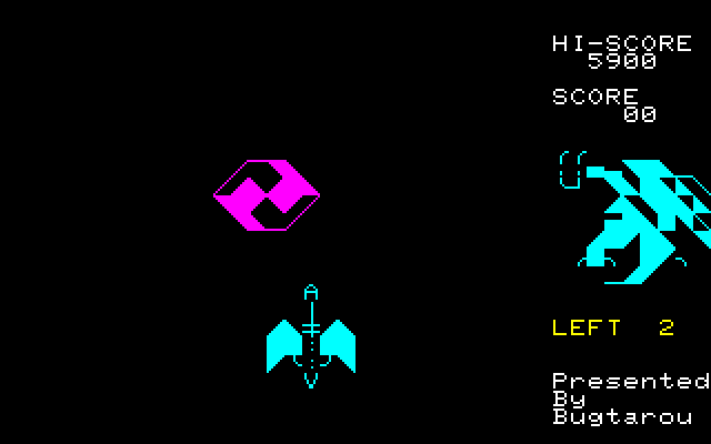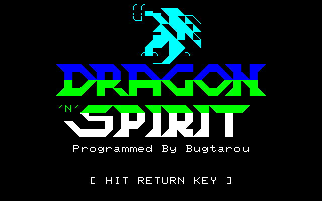 一時期、ベーマガではNモードを使った力作が多く発表されました。 時代的にはもうPC-8801FHあたりが主流だったのですが、毎月力作が紹介されて異様な盛り上がり方でした。それらの作品の中でも最高傑作のひとつと思われるのがこのBug太郎さんによる「DRAGON 'N' SPIRIT」です('87年10月号に掲載)。 ゲーム内容もさることながら、秀逸なのがオープニングデモです。山の頂上にいる主人公が剣をかざしたところに雷が落ちてきてドラゴンに変身する場面がノーマルキャラクターで見事に(?)再現されています。 ![]() 本物っぽいタイトル画面。これだけでも凝りようが伝わってきます・・・ ![]() おなじみの雷が落ちて竜に変身するデモ ![]() 敵の動きは単純ではなく、途中で方向を変えたりします。用心用心・・・・。 ![]() アイテムを取ると首が増えます。弾が増えるだけでなく、威力も増しています。 ![]() ボスキャラ出現。面ごとにザコキャラもボスキャラも違います。 このゲーム作者のBug太郎さんはその後アーケードゲームを作る会社に就職されて、本物のゲームクリエイターになったそうです。すごいですねぇ・・・。 ちなみに、このシリーズにはR-TYPEをNモードで再現したN-TYPEや、3DシューティングのSPACE'N'HARRIER、さらにはThander'N'Bladeがありました。もう、Nモードは楽し過ぎです。 (エンディングの写真も撮りたかったのですが、まだそこまで行けてません・・・) |