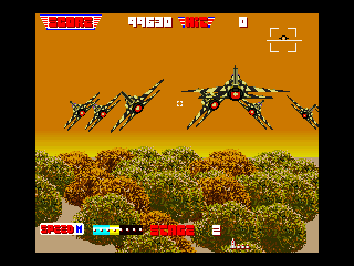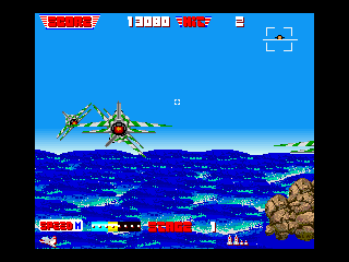 これは初期のTOWNSを代表するゲームといえるでしょう。やっかみ半分で他機種のユーザーからずいぶん批判されていましたが、美しいグラフィックとリアルなサウンドでとても楽しめました。このゲームの場合、ウリのひとつは景色なので他機種版のように表示物を大幅に減らしてしまっては楽しみも半減です。(表示物を数十分の一に減らして煙をただのメッシュにして「こっちの方が速い」とかもうアホかと・・・) また、実演奏を録音したBGMは素晴らしい出来で聴き応えがありました。 ただ、TOWNSパッドの制約から減速時に下を向くことができず、ボーナスステージがちっともボーナスでないという欠点がありました・・・。 |