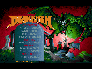 このゲームは超高速の3D表示が特徴です(移動中によく乗り物酔いになりました)。巨大な敵キャラがすごい勢いで画面中に爆発したり、1677万色中256色モードの美しい夕焼けや朝焼けなどビジュアル的には素晴らしいゲームです。 (当時88ユーザーだった友人はこれのデモを見てTOWNSⅡCXを衝動買いしてしまいました。) 盛り沢山の極悪なトラップ、ヒントが無ければ絶対に解けない構成、かなり難のある操作性など、今考えるとゲームとしての完成度は「?」ですが飽きもせず相当やりこみました。 何回かクリアしたのですが、途中でもらえる最強の剣がたまにヘボい剣だったり、味方のはずのアーカ王女に触ってぶっ殺されたりと何度やっても謎だらけです。今になってもアーケン城の消える通路の出現条件がわからず、出現しない時にはテレポートで強引にクリアしたりとか・・・。 |