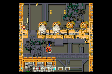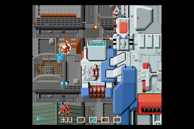 これも面白いゲームでしたね。TOWNS版が出てくれたおかげでゲーセンで使う100円玉の数が相当節約できました。パターンを覚えるとある程度までは行けるのですが、実際には反射神経も必要で、最終面までは何とか行けるのですがクリアはできませんでした。 ゲーセン版に対して上下の画面幅が狭い分、スクロールさせて全体が表示されるようになっています。パターンを覚えていないと画面の外からいきなりレーザーを撃たれてミスなんてことになりますが、その反面ゲーセンと同じ攻略が通用しました。 |