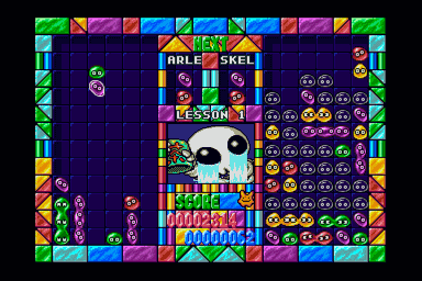人気のパズルゲームの移植版です。もう元になったRPGの魔道物語とか覚えている人はいなさそうです。 落ち物のパズルなのですが、結構奥が深く、頭を使って連鎖ができるように置き方を組み立てる必要があります。スピードが速くなってくると結構大変です。 色々な機種で出ていたのですが、TOWNS版が発売されて嬉しかったですね。これで腕を鍛えて姪っ子の家のプレステ版もクリアしたものです。キャラクターが色々しゃべる(というか「お茶ー!」とかの奇声を上げる)のが斬新でした。 今でもこの「ぷよぷよシリーズ」はWiiやDSで健在で、実に息の長いソフトです。 残念ながらこんないいソフトを開発したコンパイル社は放漫経営であえなく潰れてしまいましたが・・・ |