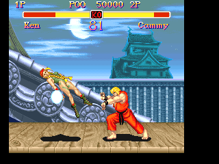 いわずと知れた超有名格闘ゲームです。初回出荷版(といってもそれ以外のバージョンがあるのかどうか判りませんが)には6ボタンパッドが付いてきました。 ただ、さすがにパッドでは操作がしづらく、すぐ左手の親指に豆ができてしまいました。特に昇竜拳系の技が出しにくかったのですが、市販のジョイスティックは6ボタンに対応していないのでやむを得ず付属のパッドを使うしかありせんでした(結局波動拳ばっかで戦ってた記憶があります)。 ゲームとしてはさすがに面白く、使えるキャラクターも多いので長く遊べました(遊ぶ→豆ができる→しばらく休んで豆を治す→遊ぶ・・・の無限ループです)。 なお、486SX以上のCPU推奨となっていますが、初代TOWNSでもメモリが4MB以上あれば問題無くプレイできます。 |