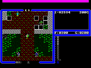 このソフトは海外の名作RPGの移植なのですが、おそらくTOWNSの海外ソフトの移植モノで最低の出来であると思われます。とにかくグラフィックの出来がひどくてFM-7版よりもずっと下です。FM-7⇒TOWNSで見違えるようにクオリティの上がったソフトは多数あるのですが、逆に出来が悪くなったのはこのソフトだけかもしれません。 (ただ、オープニングのストーリー説明のグラフィックなどは多色モードが使用されており、なかなかきれいです。) ゲームとしてはかなり面白いです。色々な場所で色々な人に話を聞いて回って少しずつ話を進めていきます。メモを取りながら進めていくのですが、あっという間にメモが何ページにも膨らんでしまいました。徐々に色々なことが判っていき、仲間が増え、アイテムが手に入っていくというまさにRPGの王道を行く内容になっています。 マニュアル類も立派な読み物のようになっていて読みごたえがあります。 グラフィックの手抜きさえなければ名作なのですが・・・(せめて重ね合わせ処理ぐらいはしてほしかったですねぇ)。 |