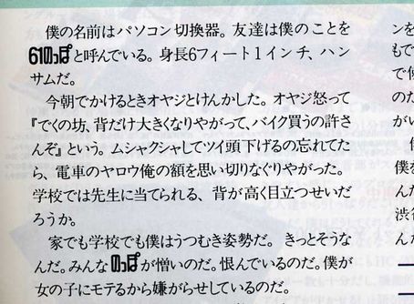 <のっぽ>![]() あのデブに弟がいました。 広告文によると「友達は僕のことを61のっぽと呼んでいる。身長6フィート1インチ。ハンサムだ。」とあります。 「家でも学校でも僕はうつむき姿勢だ。きっとそうなんだ。みんなのっぽが憎いんだ。恨んでいるのだ。僕が女の子にモテるから嫌がらせしているのだ。」と続きます。 のっぽでハンサムでも色々悩みはあるようですね・・・・ この手の装置に定価が99,800円というのは余りにも高い気がしますね。当時のプリンタでも安いのなら1台買えてしまいそうです。 ![]() 悩み深きノッポ君の語り・・・・ でも、身長183cmでハンサムならどう考えても基本的に女の子にもてそうで勝ち組ですね(しかも趣味はギターのようですし)。これだけの身長があればバスケ部からもバレー部からも引く手あまたです。 それにしてもこの会社、キャラといいこの文章といい相当のキワモノですね。 愛称がノッポになったのに型番は姉と同じく「DEB-」のままみたいです。まあ、このキャラの方が見てて不快ではないのでまだマシなのですが。 |